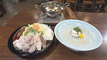 ふぐまつりで振舞われる「ふぐ汁」「ふぐ干物」