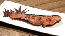 ➂ フライパンにオーブンペーパーを敷き、2の味噌をぬぐってからのせ、弱火で3分焼く。