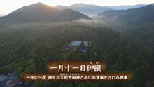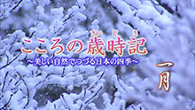 2019年1月7日 こころの歳時記 1月 ~美しい自然でつづる日本の四季~ 取材先 / 神宮内宮、神宮宮域林、他、各地 所在地 / 三重県伊勢市、名古屋市、ほか 連絡先 / 神宮司廳(非公開) 伊勢神宮の四季や美しい日本の四季と自然を映像で表現する「映像歳時記」。 喜びやお祝いの言葉を述べることを指す美しい日本語「寿(ことほ)ぐ」。お正月にも花を咲かせる「子福(こぶく)桜」。一つの花から複数の実が実ることから、新年を寿ぐおめでたい花としてこの名がつけられたとか。 1月5日は二十四節気の小寒。この日から立春までの30日が「寒の内」。 1月7日は七草の節句。春の七草を入れた七草粥(ななくさがゆ)をいただいて、今年の豊作と無病息災を願います。 伊勢神宮内宮では1月11日、神々が一堂に会し共にお食事をされる一月十一日御饌(みけ)の神事が行われます。そして午後には、内宮五丈殿で日本古来の歌舞「東遊(あずまあそび)」が神々に捧げられます。 神宮宮域林ではカンアオイの花が真冬の地面にひっそりと咲いています。 広い河原などで枯野のように見える枯れた葦原は、実は小鳥たちの隠れ家。 冬鳥のオオジュリンが器用に葦につかまり越冬する虫たちを食べています。 冬鳥は地味な色の鳥が多い中、「冬の貴婦人」の異名を持つ目にも鮮やかな小鳥がタゲリ。運がいいと名古屋近郊の広い田畑で見ることができます。 1月20日は二十四節気の「大寒(だいかん)」。一年で最も寒さ厳しい時季。 寒さが極まり、凛(りん)とした冷たさを表す美しい言葉が「冴(さ)ゆる」。日本の冬の自然美が見られる時季でもあります。 そんな真冬のアスファルトの道で、鮮やかな緑を見つけました。 マンホールの穴に生えた苔とツメクサは、まるで小さな坪庭のようです。 冬来たりなば、春遠からじ。1月も下旬になると、梅のつぼみがふくらみ、暖かい地方では、梅の開花の便りが届きはじめます。