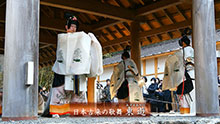 伊勢神宮内宮では1月11日、神々が一堂に会し共にお食事をされる一月十一日御饌(みけ)の神事が行われます。そして午後には、内宮五丈殿で日本古来の歌舞「東遊(あずまあそび)」が神々に捧げられます。