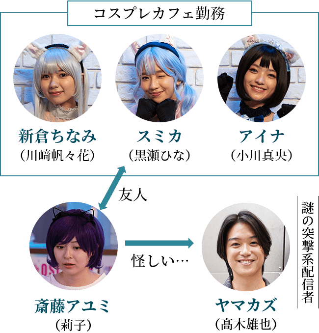 そして、マユを追いかける突撃系 配信者・ヤマカズ役は Hey! Say! JUMPとして活躍する傍ら、ドラマや舞台など数多く活動する 髙木雄也 が務める。